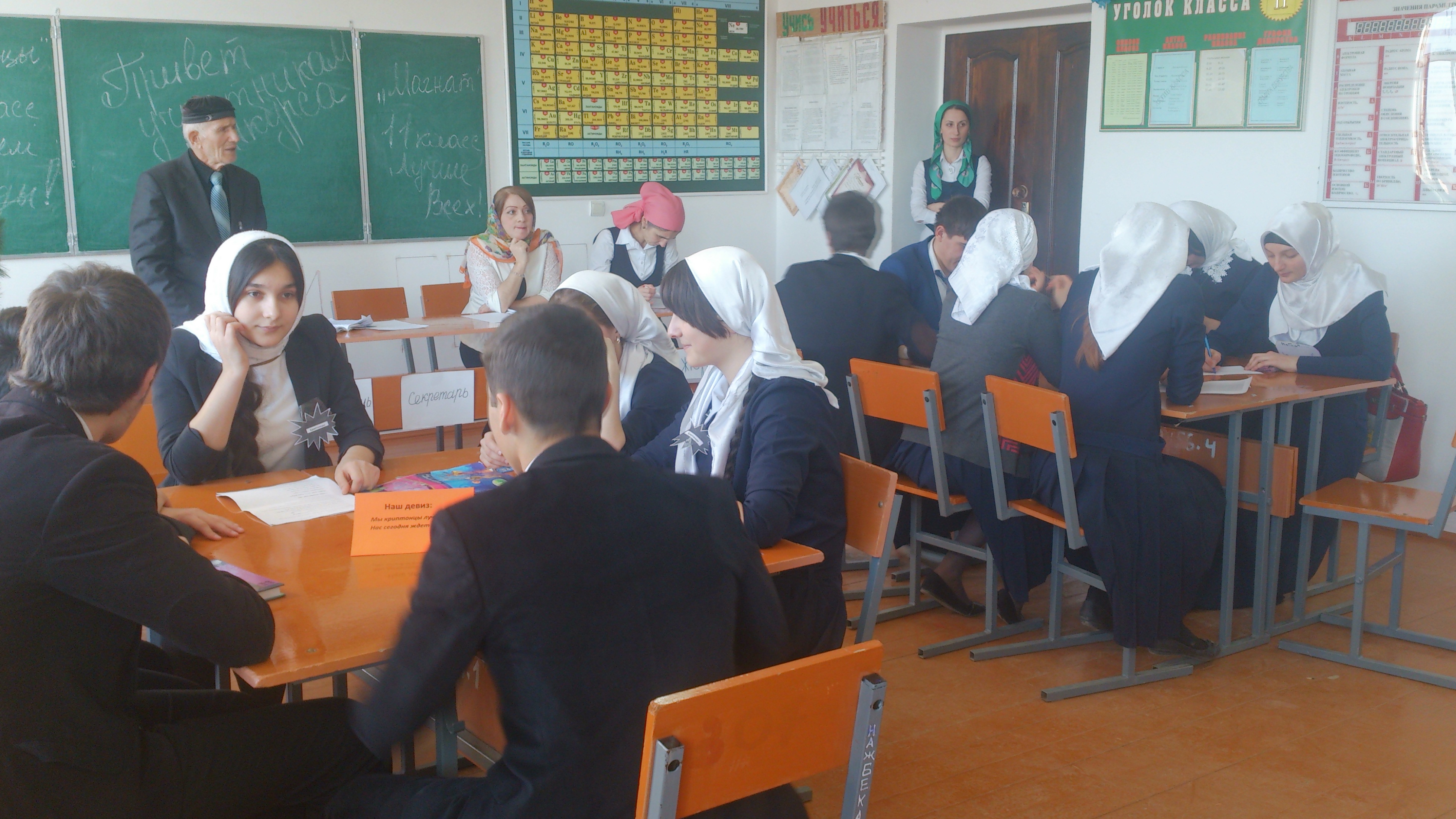 С 18 по 22 декабря 2014 года в МБОУ «СОШ с.Гехи-Чу» проходил конкурс «Эрудиты по химии». В конкурсе участвовали 4 команды по 7 учащихся в каждой команде.Команды 11 класс: -«Магнат»,10 – «Криптонцы», 9 а – «Биохимики», 9б- «Алые паруса»Победителями конкурса между 11 и 10 классами стала команда «Магнат»; между 9 а и 9 б –«Алые паруса».Программа конкурса была насыщена формулами, уравнениями, закономерностями по химии. Программа состояла из конкурса стенной газеты . Капитаны команд познакомили собравшихся с участниками своей команды, речевкой и эмблемой.Все команды исполнили «Гимн, посвященный химии». Как в калейдоскопе один номер программы сменялся другим: загадки, викторины, кроссворды, стихотворения и выполнения химических переходов. Конкурс прошел интересно, поучительно, он обогатил словарный запас учащихся, а также закрепил знания по многим разделам курса химии. В конце завершения программы жюри подвело итоги и наградило победителей: команда 11 класса «Магнат» и 9 б класса «Алые паруса»- грамотами и дипломами.