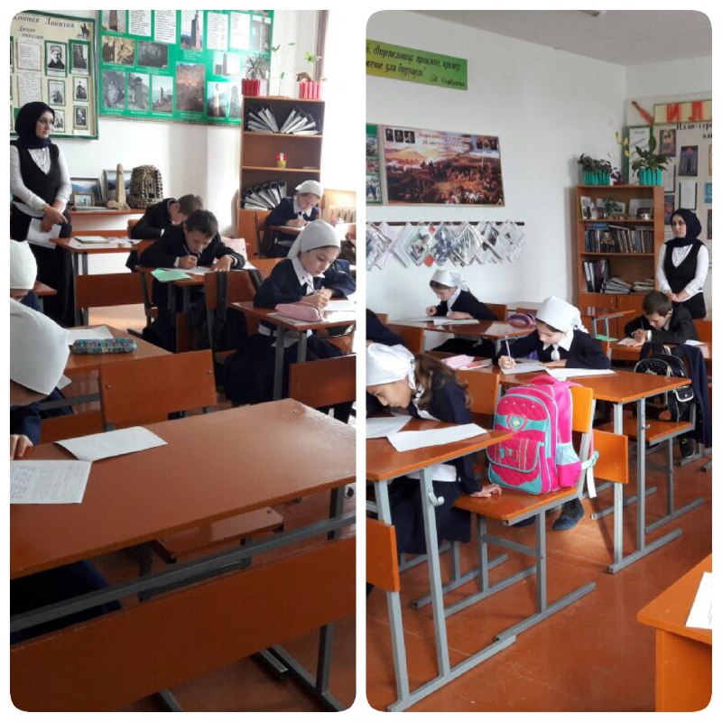 Учащиеся 5х классов пишут проверочную работу по русскому языку.