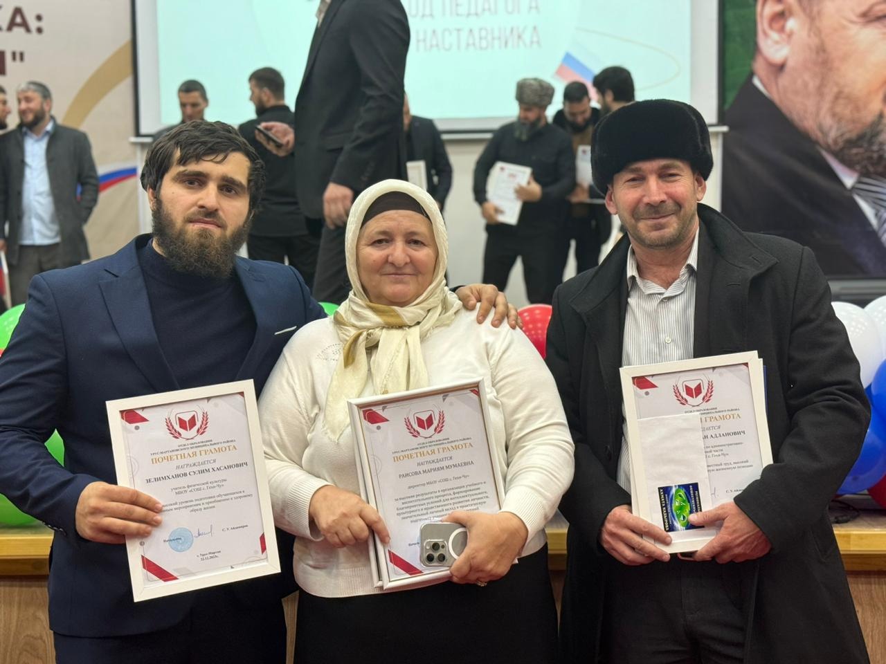 28.12.2023В рамках торжественного мероприятия, посвященного подведению итогов года, было проведено награждение педагогов и наставников, которые внесли значительный вклад в развитие образовательного учреждения. Одним из заслуженных награжденных стала наша директор Мариям Мумаевна Раисова. Ее трудолюбие, профессионализм и преданность делу образования позволили нашей школе достичь новых высот. Под ее руководством, учебный процесс стал более эффективным и интересным, а образовательное учреждение - центром развития и достижений.Также был отмечен заместитель директора по административно-хозяйственной части, Аслан Адланович Тимаров. Его внимательность, ответственность и организационные навыки сделали возможным создание комфортных условий для работы всех сотрудников. Благодаря его усилиям, наша школа обладает безупречным управлением и хорошо сохраняет свое имущество.Наконец, наградой был удостоен и учитель физкультуры Сулим Хасанович Зелемханов. Его энтузиазм, профессионализм и способность мотивировать учащихся позволяют достигать отличных результатов в физическом развитии и спортивных достижениях. Благодаря его занятиям, наши ученики не только поддерживают свое здоровье и физическую форму, но и нередко выступают на соревнованиях с победами.Награждение педагогов и наставников является заслуженным признанием их труда и достижений. Они являются неотъемлемой частью нашего образовательного процесса, и благодаря их труду мы с гордостью говорим, что наша школа - место, где каждый ученик может раскрыть свой потенциал и достичь успеха.