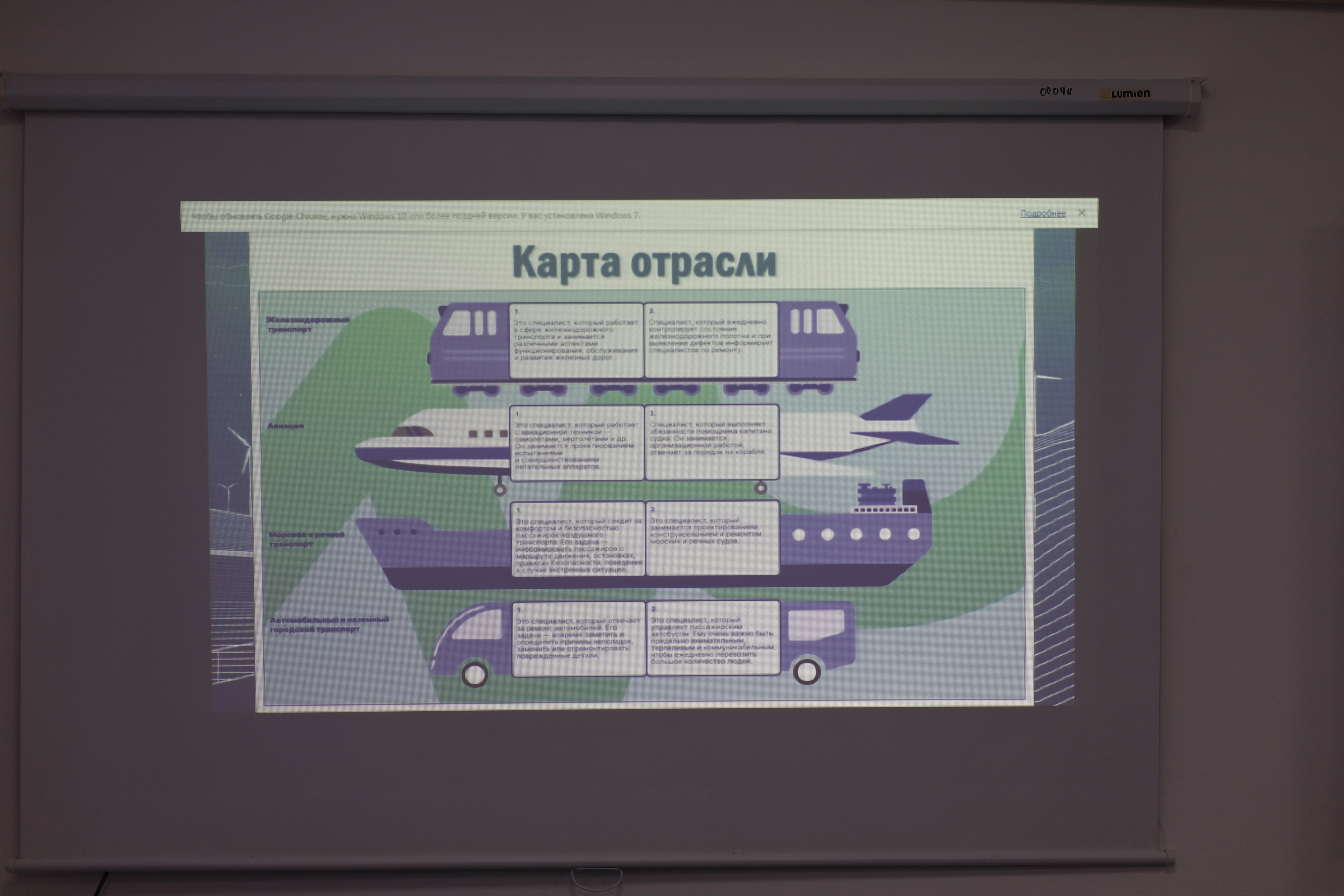 Профориентационное занятие под названием "Россия мобильная: узнаю о профессиях и достижениях в транспортной отрасли"