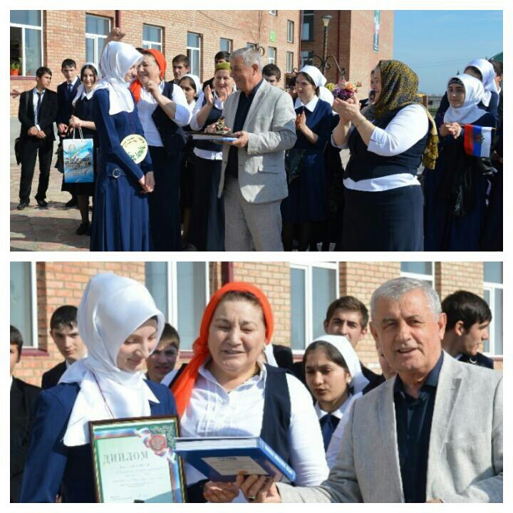 27.04.2015На следующий день, после объявления результатов конкурса «Ученик года -2015!», А.М. Гучигов приехал в нашу школу, на общешкольную утреннюю линейку, для награждения Хожалиевой Залины. Он вручил ей диплом участника конкурса, различные справочники и фигурку маленькой совы, как символ мудрости и знаний.